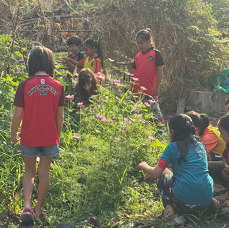 We held a student-led flea market at the café, where students applied for a ‘business licence’ in order to sell items to their peers. The café was run by Prin, Alesso and Alex, who used homegrown bananas from our farm and successfully made a profit.